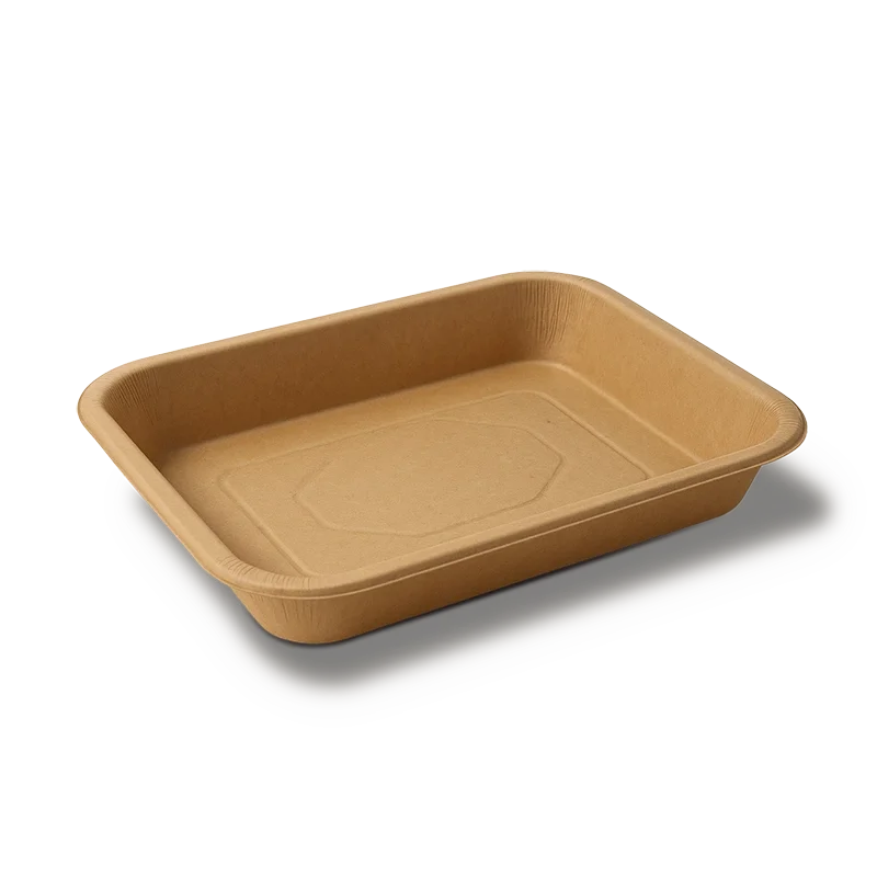 Fabricada con material kraft natural (pulpa de madera biodegradable), esta bandeja es antigrasa, antifluidos y resistente al calor, ideal para platos calientes, guisos, ensaladas o porciones individuales.