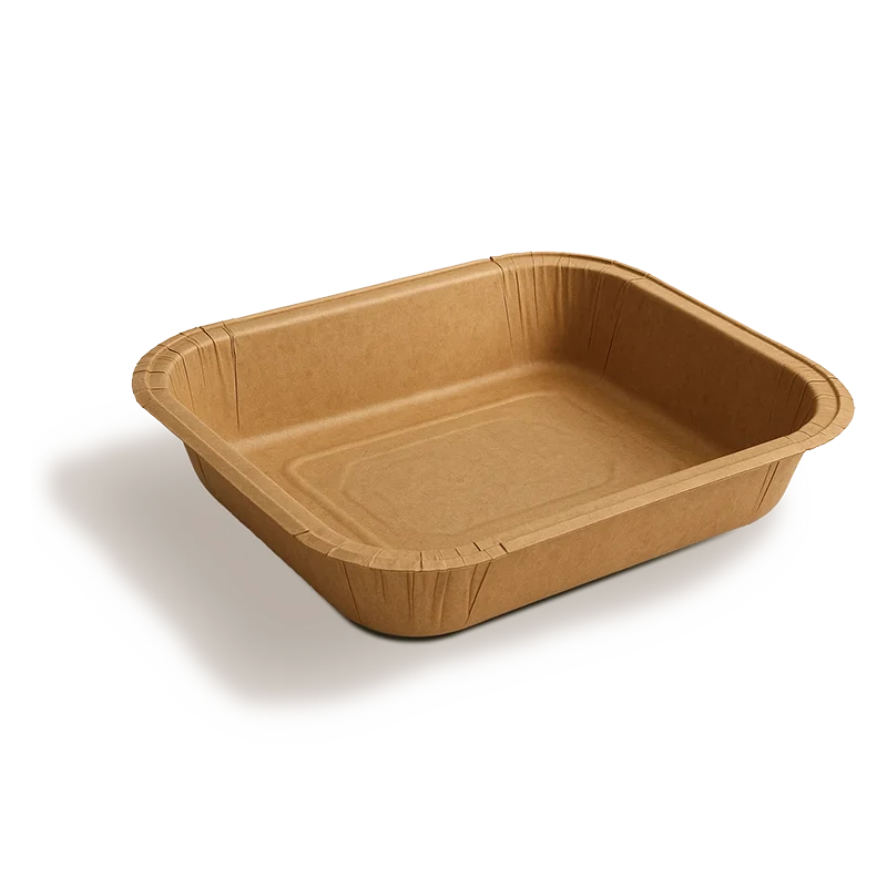 Bandeja honda ecológica de 800 ml hecha en kraft compostable.